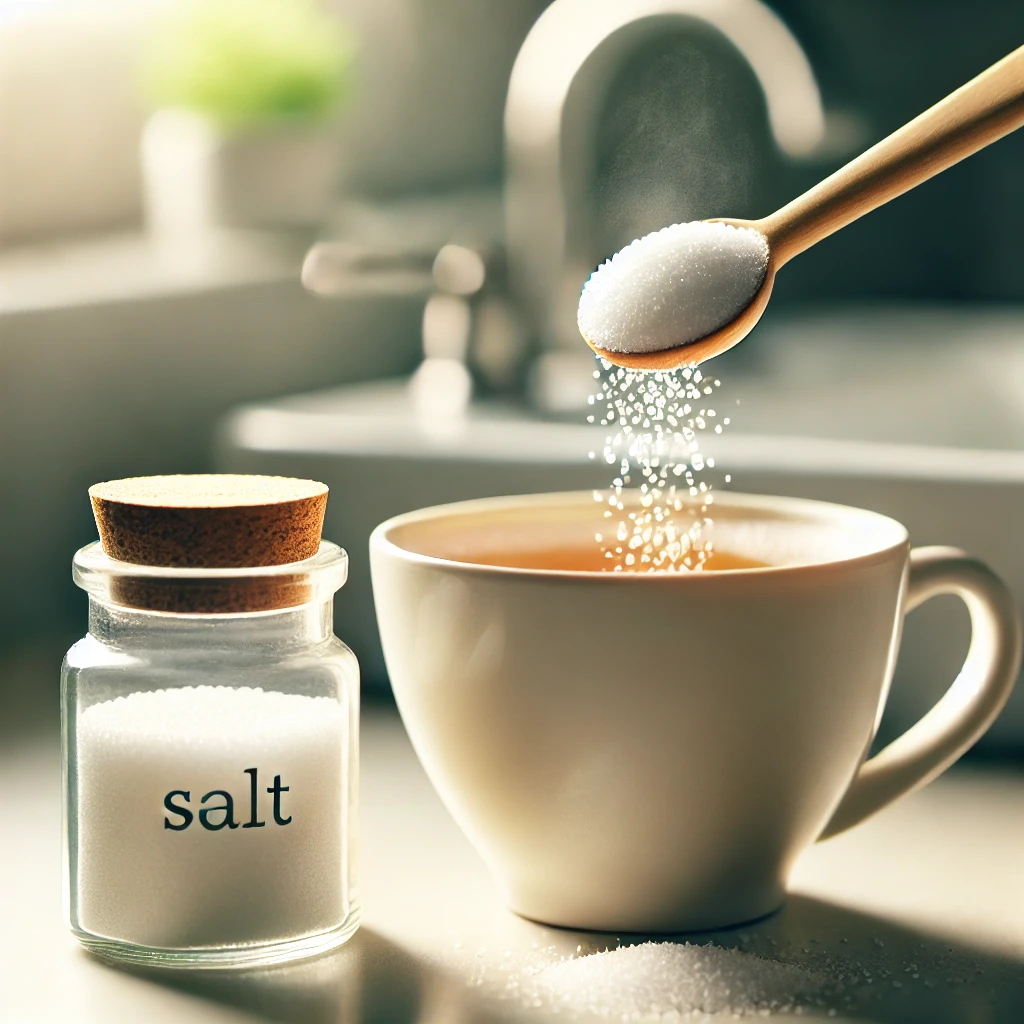 - 따뜻한 물 한 컵에 소금 1/2작은술을 섞습니다.