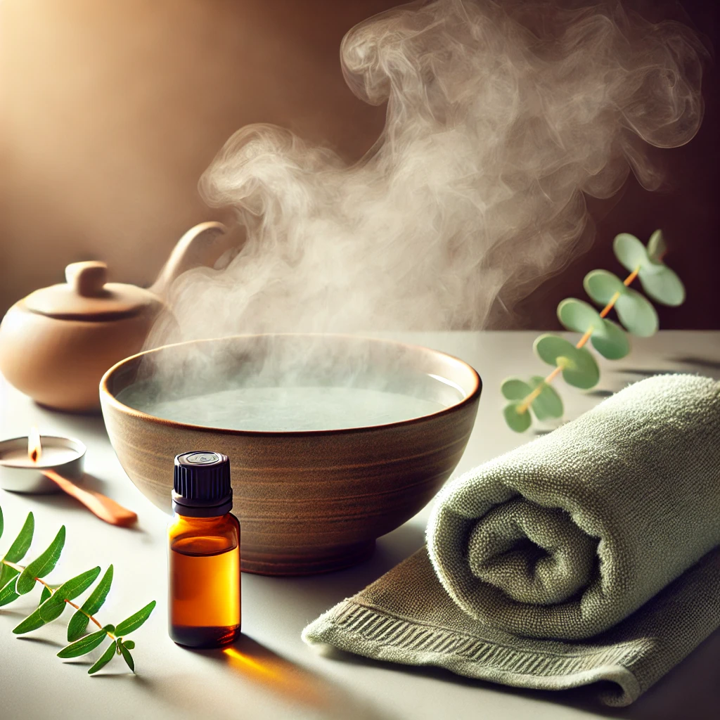 - 뜨거운 물을 대야에 담고 얼굴을 수건으로 덮습니다.